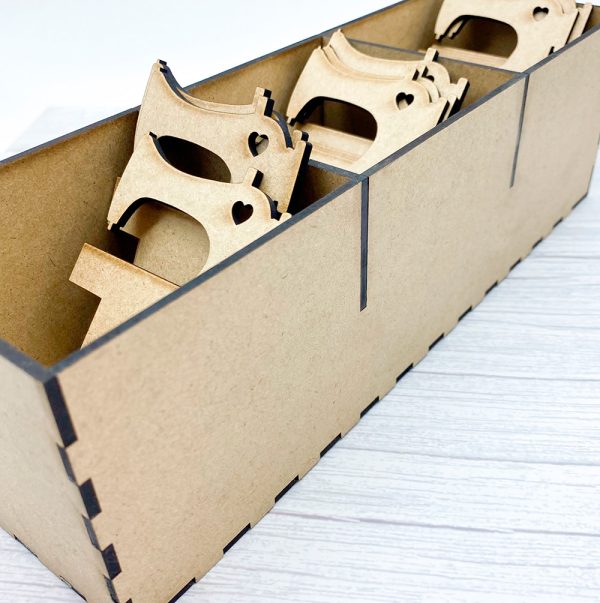 Descubre nuestra funcional caja de almacenamiento con tres compartimentos. Fabricada en madera MDF, una obra artesanal que combina funcionalidad y creatividad.