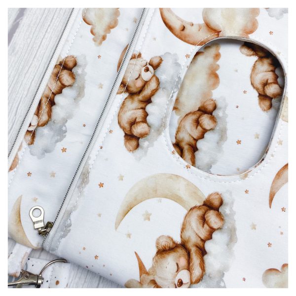 - Bolsillo exterior con una abertura especial para toallitas, con cierre de cremallera para mantenerlas seguras y accesibles.