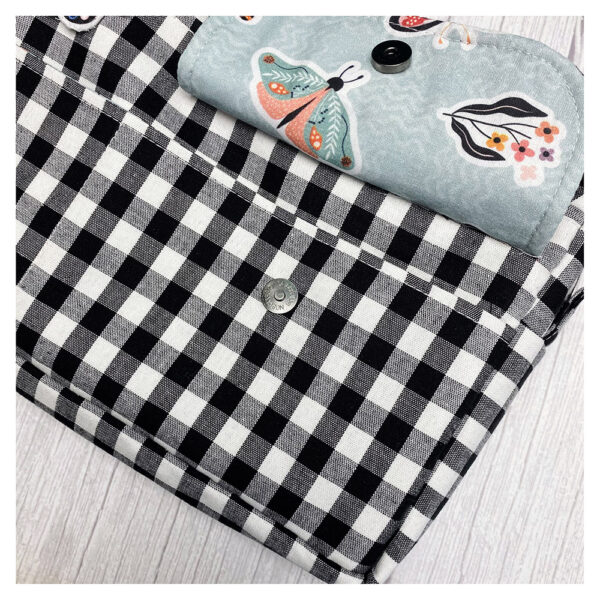 Su diseño incluye múltiples compartimentos exteriores de distintos tamaños, que podrás confeccionar exactamente como se muestra en el curso o adaptar a tu propio estilo de organización. Uno de los compartimentos incorpora solapa con cierre magnético, aportando un acabado funcional y elegante.