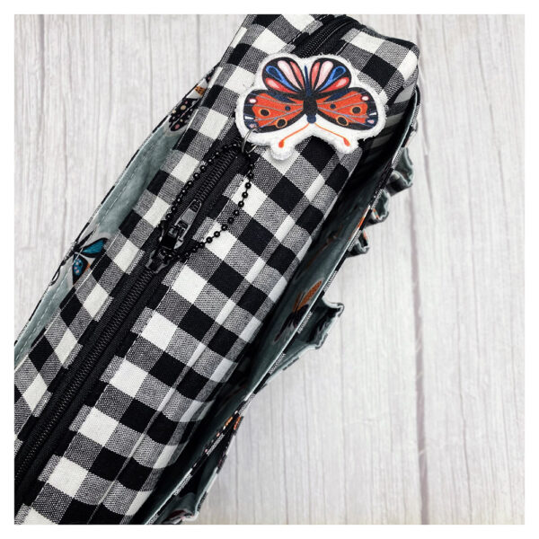 En el interior encontrarás bolsillos adicionales y acabados con bies a la vista, que aportan resistencia, limpieza en las terminaciones y un resultado final muy profesional..