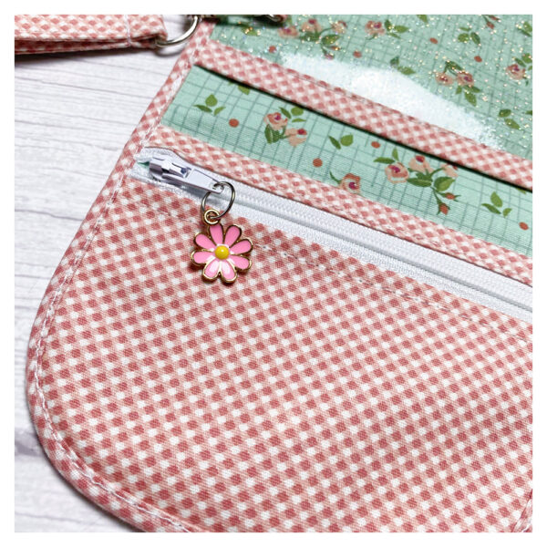 Un diseño práctico y versátil, ideal para guardar tarjetas, dinero, cables o pequeños objetos dentro del bolso. Incluye mini tutorial disponible en Instagram y YouTube.