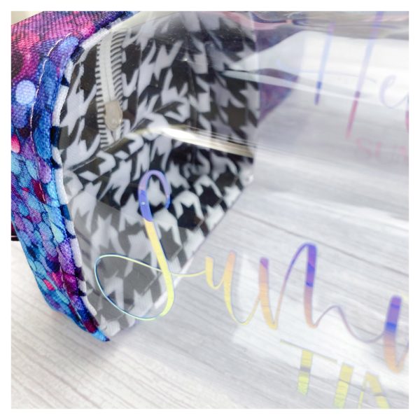 Pensado para quien busca piezas prácticas y bien rematadas para uso veraniego, SunnyPouch combina telas impermeables con vinilo plástico transparente y ofrece la posibilidad de personalizar cada neceser con vinilo permanente. El resultado: un neceser resistente al agua, limpio en sus líneas y acorde con una imagen cuidada.